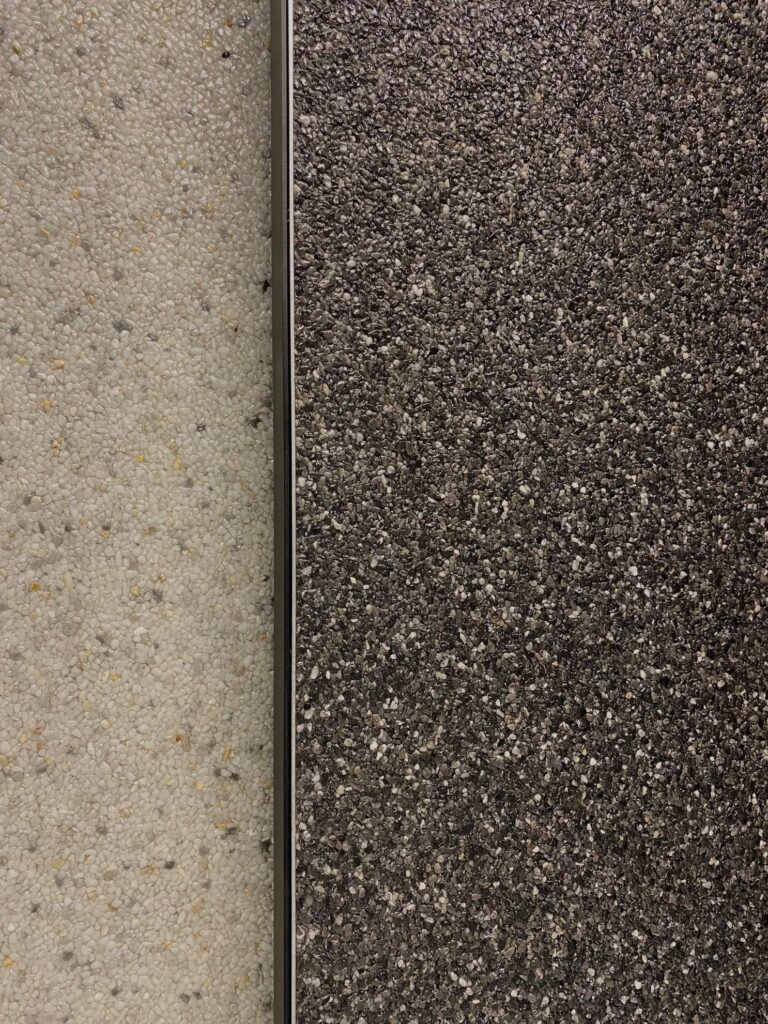Een steen- of marmertapijt is 6 à 8 mm dik, wat hem dikker maakt dan onze andere design gietvloeren. Dat komt door de steentjesgrootte.